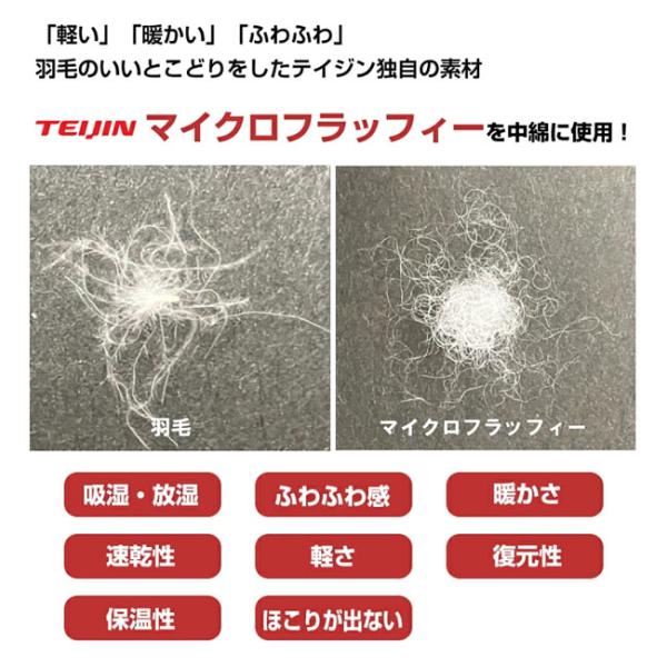繊維のプロフェッショナル帝人が最新素材で作り上げた肌掛け布団。吸放湿性に優れたテイジン独自の高機能繊維『MICROFLUFFY(R)Breath』を中綿に使用しているので、布団の中の湿度を常に調整しサラッと快適な環境に。羽毛のような細い繊維が空気をたっぷりと含み、「暖かさ」と「ふわふわ感」を実現。羽毛の肌掛け布団と同等の軽さです。適度な保温性があるので、朝晩冷え込む時期やエアコンで肌寒く感じる時も心地よく快適にお休みいただけます。
