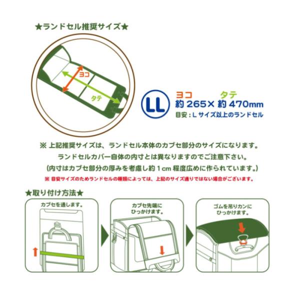 ランドセル推奨サイズ(ランドセルのカブセ部分サイズ)ヨコ 約265 × タテ 約470 mm