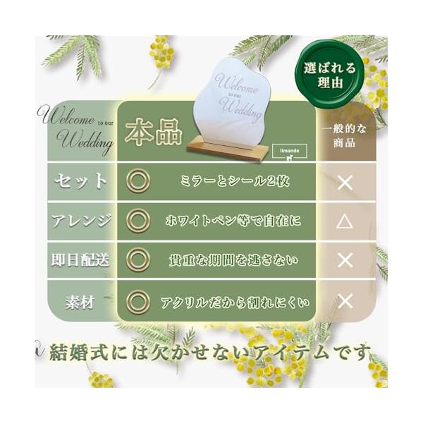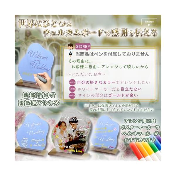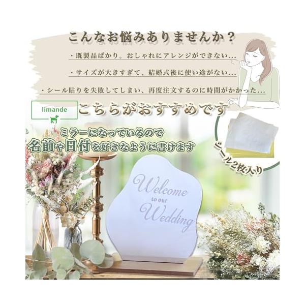 limande ウェルカムボード 結婚式 ウェルカムスペース ウェーブミラー シール2枚付 ウェルカムボード アレンジ可能 化粧ミラー 記念品