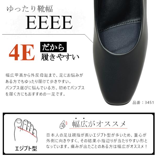 レディース・ウィメンズ・婦人靴・パンプス・ビジネスパンプス・黒・幅広・4E・外反母趾・オフィス・リクルート・就活・お仕事履き・スーツ・冠婚葬祭・入学式・卒業式・履きやすい・柔らかい・疲れない・痛まない・クッション・【5.0〜6.0cm】