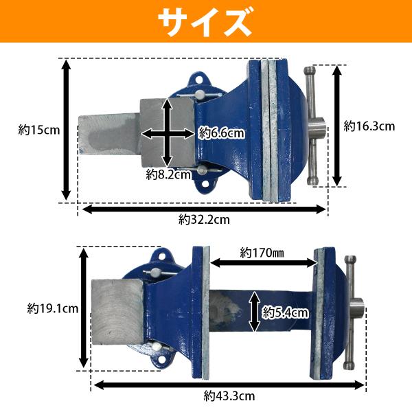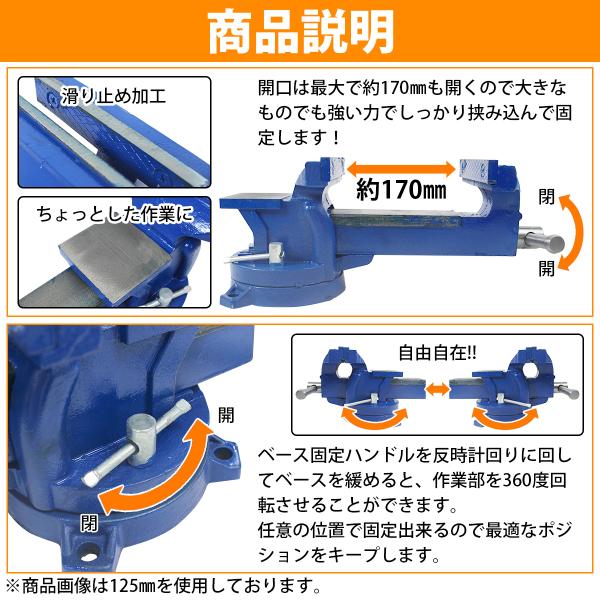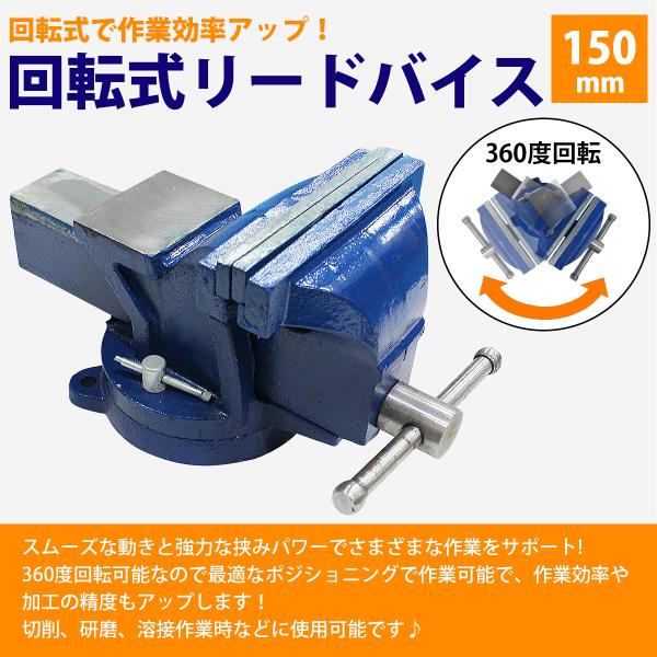 口幅 150mm 最大開口 170mm バイス 万力 360度 回転式 卓上 リード ベンチ 3点止 作業 台 溶接 鉄工 固定 締付 工具 テーブル