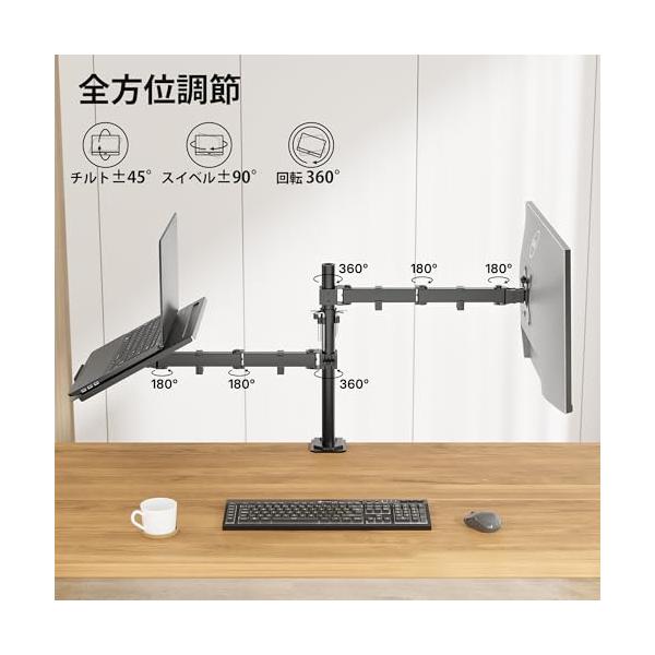 1homefurnit ノートパソコンアーム モニターアーム 2in1 デュアル ノートPCアーム 13-32インチ対応 16インチまで ノート