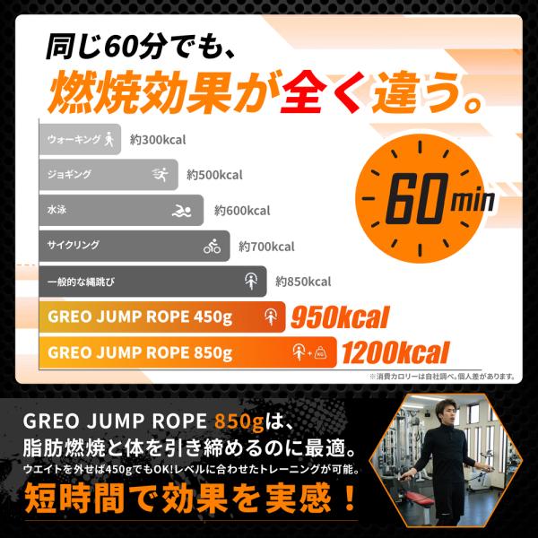 【理学療法士監修 × 重量850g】縄跳び トレーニング用 大人用 ボクシング 高負荷 筋トレ 有酸素運動 自宅ジム ヘビーロープ 重い ダイエット GREO グレオ