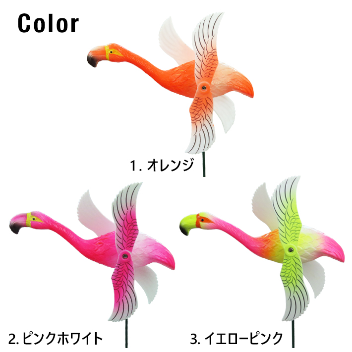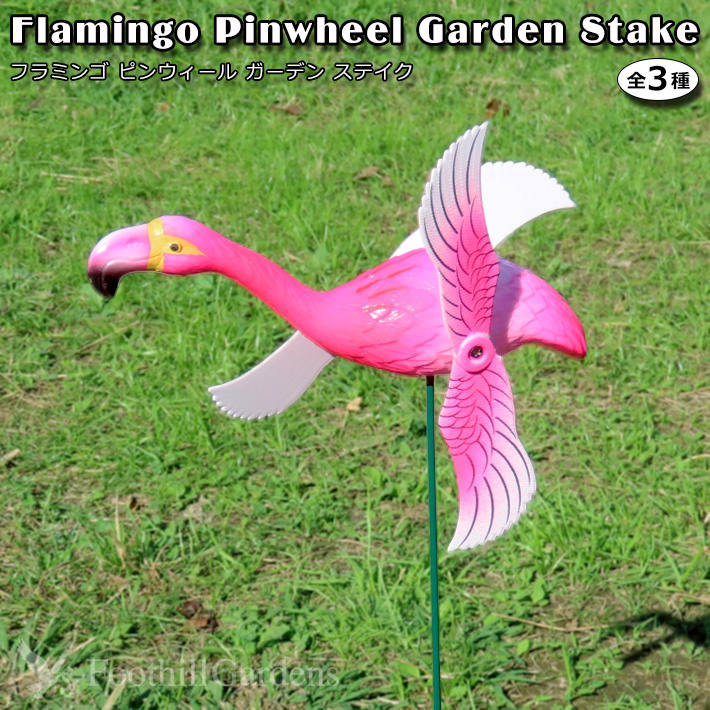 フラミンゴ ピンウィール ガーデン ステイク (イエロー ピンク) 鳥 プランター 観葉植物 風車 ガーデニング ピック