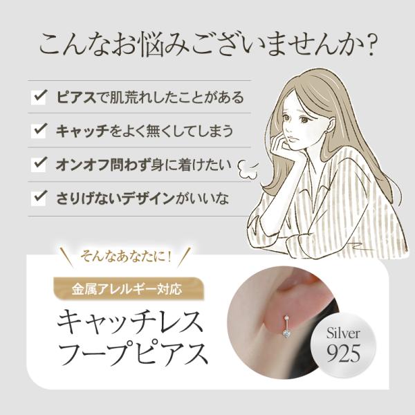 キャッチレスフープピアス