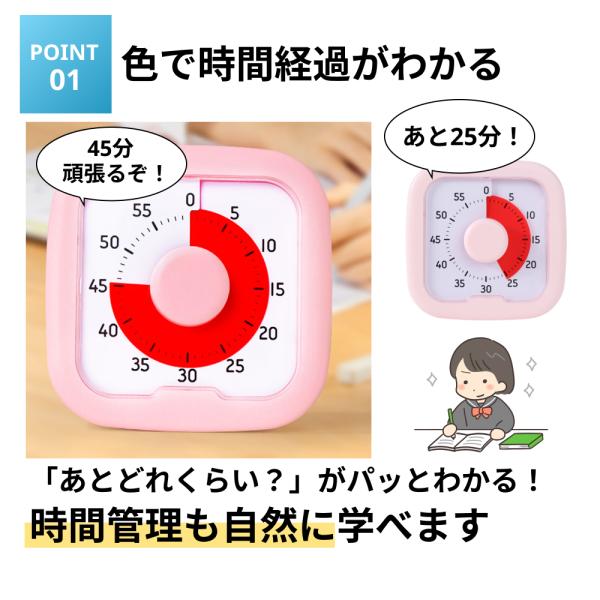 タイマー ビジュアルタイマー 子供 子ども 時計 知育 学習タイマー かわいい 勉強 テレビ キッチンタイマー アナログ ゲーム カウント 料理 自宅学習