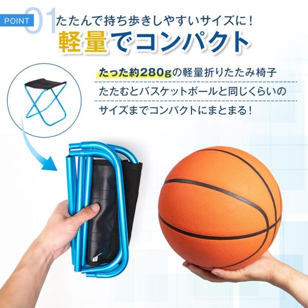 軽量でコンパクトな、持ち運びに便利な折りたたみ椅子