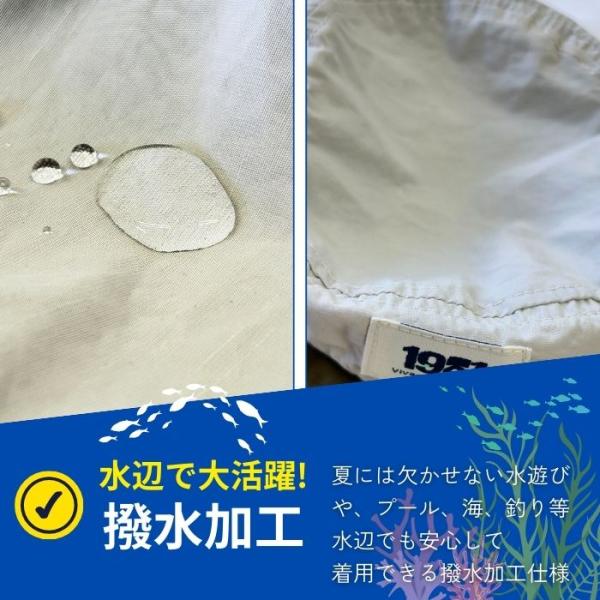 撥水加工が施されているから釣りや海水浴など水辺で大活躍!