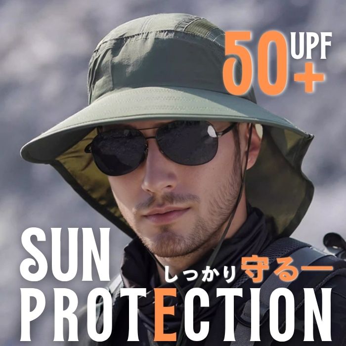 登山・キャンプ・自転車などアウトドアに最適な【UVカット99%・UPF50+】サファリハット。
