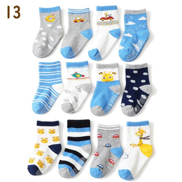 ベビー 靴下 すべり止め付き 4足セット おたのしみ ソックス 男の子 女の子 8-10cm 柄 シンプル ボーダー 子供 くつした かわいい おしゃれ 爆買