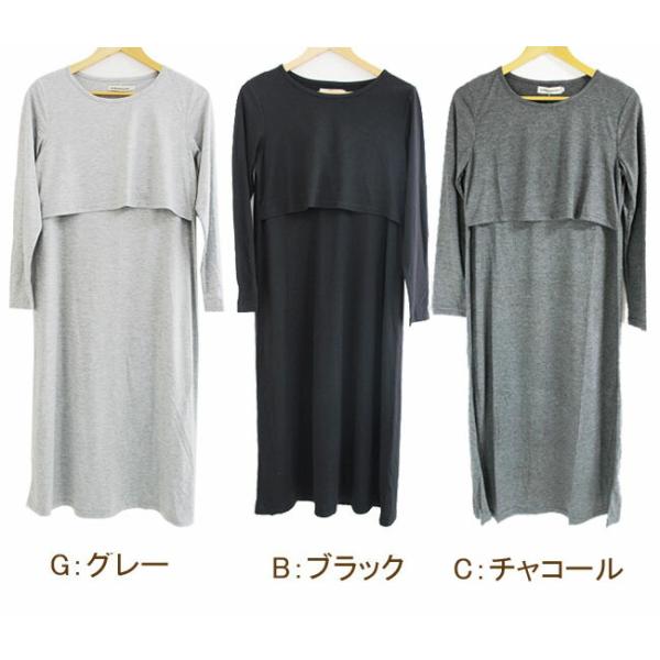 授乳服 ワンピース 長袖 産後 マタニティ クロス授乳口付き 大きいサイズ 3カラー M L XL XXLサイズ 春 秋 冬 体型カバー ゆったり ロング マキシ丈 無地 爆買