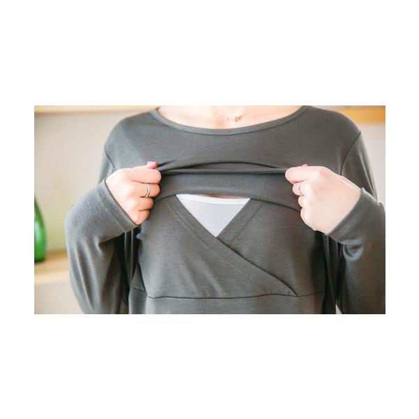 ワンピ マタニティー クロス授乳口 グレー ブラック チャコール
