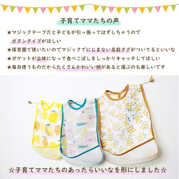 スナップボタン ネームタグ付き 食べこぼし ポケット 柔らかい