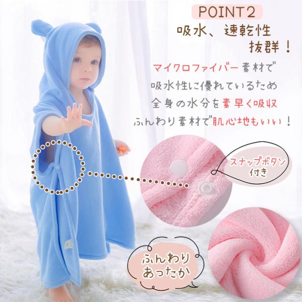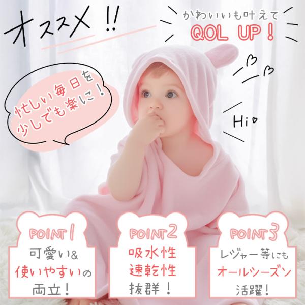 くま耳 バスタオル バスポンチョ バスローブ フード付き 赤ちゃん プール マイクロファイバー お風呂 速乾 吸水 ワンオペ かわいい ベビー キッズ 爆買