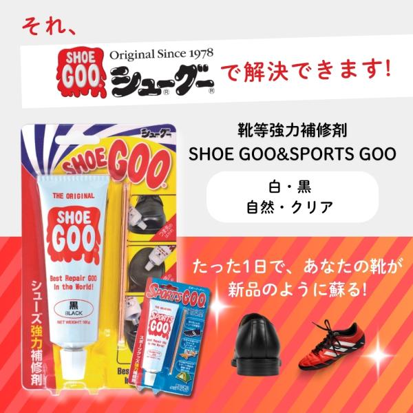 シューグー 100g 3個 セット 靴 修理 かかと補修 ソール 補修剤 黒 白 自然色 手入れ ゴム製品 shoegoo SHOEGOO ポイント利用 シューケア