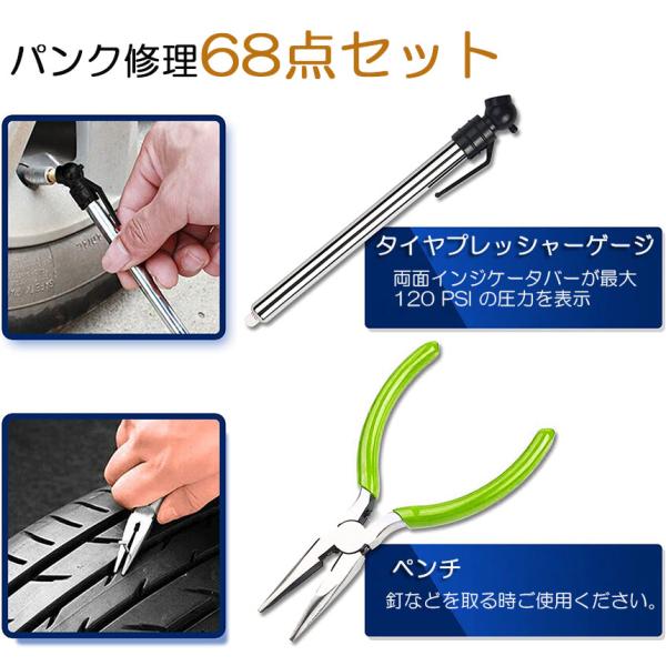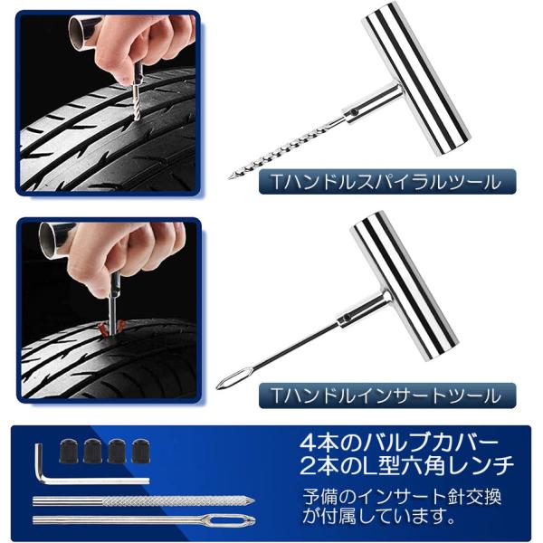 【節約または便利】自分で簡単にすぐパンク修理できる。チューブレスタイヤのオートバイから乗用車・4WD、ATV、トラクター、芝刈り機、RV、ジープ、トラックなどの車種に適用します。