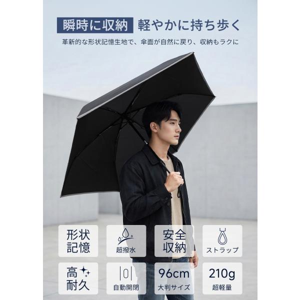 折りたたみ傘 メンズ 折畳み傘 【超軽量210g×形状記憶】 自動開閉 ワンタッチ コンパクト 逆折り 逆戻り防止構造 通勤 ビジネス
