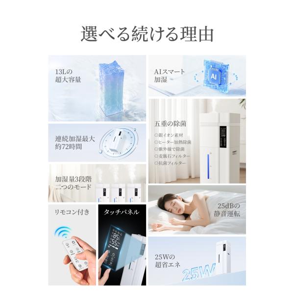 爆買 加湿器 超音波式 大容量 卓上 13L 加湿機 ハイブリッド加湿器 スチーム式 72H連続加湿 5重除菌 湿度設定 マイナスイオン UVライト除菌 省エネ アロマ対応