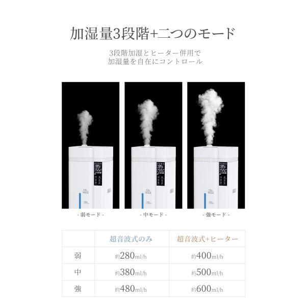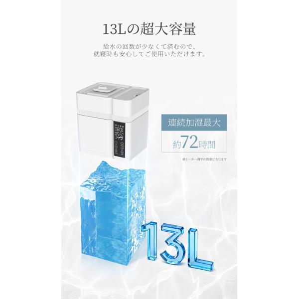 1、「超音波式」と「加熱式」を融合させた13L大容量ハイブリッド加湿器です。
