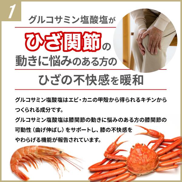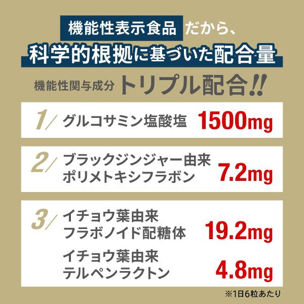 「関節成分」のグルコサミン塩酸塩は、ひざ関節の動きに悩みのある方のひざの不快感を緩和(※1)します。ブラックジンジャー由来の「筋力成分」ーポリメトキシフラボンは足の筋力をアップ、中高年の歩く力の維持をサポートします。(※2)