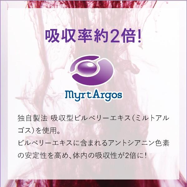 ビルベリーエキスに含まれるアントシアニン色素の安定性を高め、体内への吸収性を約2倍に高めた次世代型ビルベリーエキス「ミルトアルゴス」を使用。カシスエキス(ブラックカラント)やDHA、ビタミンEやビタミンB群配合で、ショボショボ・チカチカを素早くパッチリ!ビルベリーエキスに含まれるアントシアニン色素は、弱酸性からアルカリ性溶液中では不安定で、すぐに構造が変化してしまい、体内への吸収が難しいと考えられます。ミルトアルゴスは、特殊製法によりアントシアニン色素の不安定性を克服した次世代型のビルベリーエキスです。