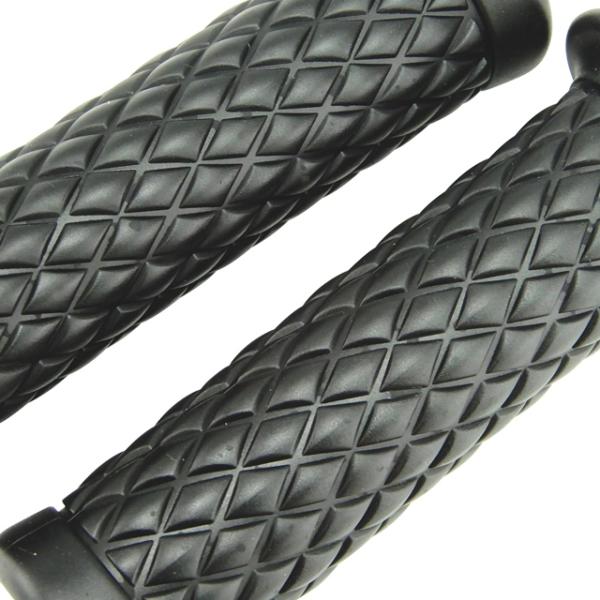 ダイヤ柄 ハンドルグリップ レトロスタイル 汎用 22.2mm ブラック バイク カスタム ビンテージ ラバーグリップ クラシック 原付 スクーター ネイキッド 旧車