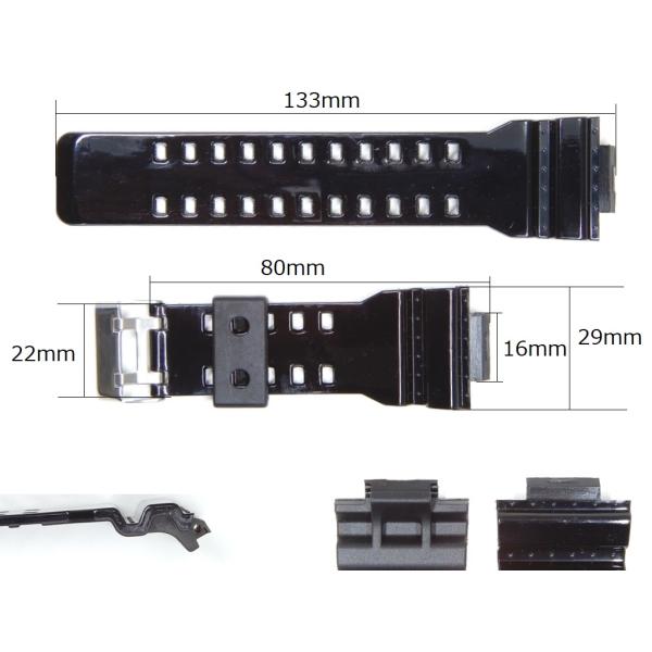 互換品 G-SHOCK 時計 ベルト バンド 16mm GA-100,GA-110,GD-120,GA-300,GA-120,GA-200,GA-150,GD-100,GW-8900 ジーショック Gショック ブラック 黒 つやあり