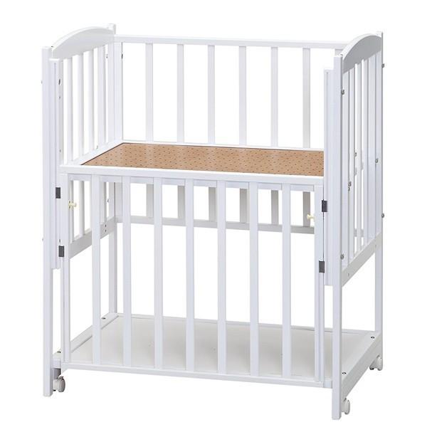 置き場所を取らないコンパクトタイプのハイタイプベビーベッド。