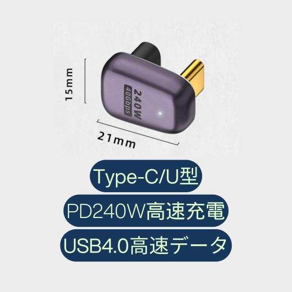 USB TypeC U字型 変換アダプタ 240W 高速充電 8K映像出力 40Gbps PD充電 高速データ転送