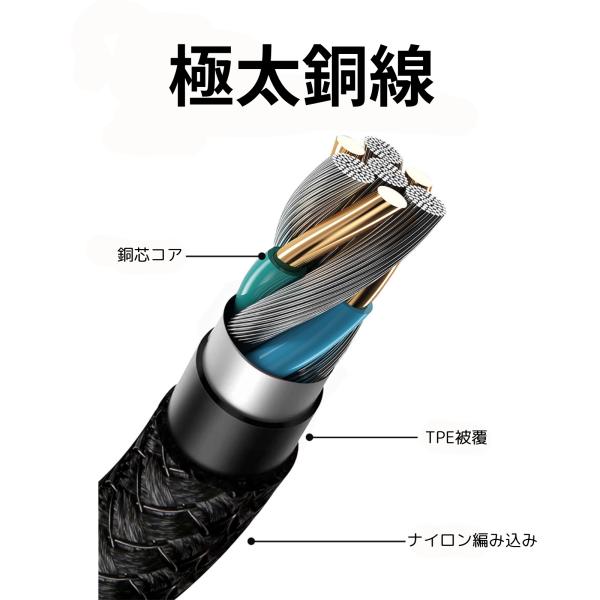 【耐久性の高いナイロン編み】ナイロン編みのケーブルは耐久性が高く、長期間の使用にも耐えます。絡まりにくく、日常の使用においてもストレスフリーです。