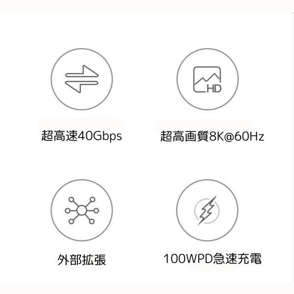 【超高速データ転送】USB4 ケーブルは最大40Gbpsのデータ転送速度を実現し、大容量ファイルや高解像度の映像を瞬時に転送できます。作業効率が飛躍的に向上します。