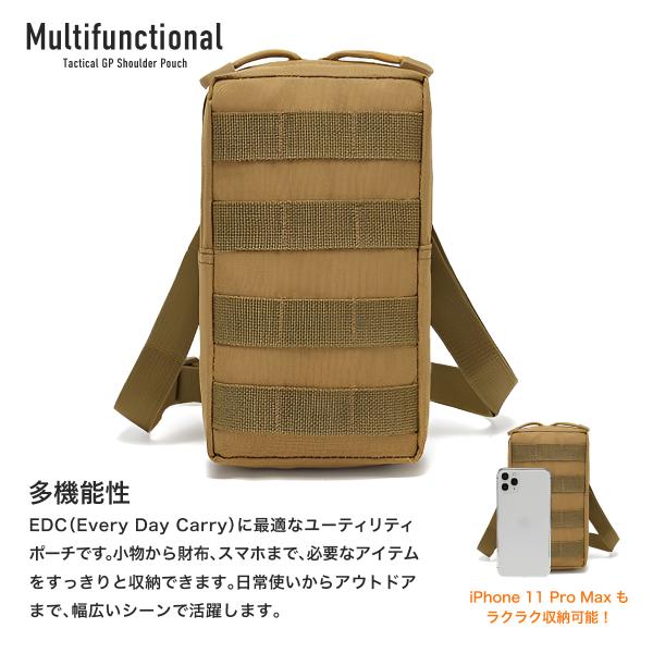 【多機能性】タクティカル GP ショルダーポーチは、EDC(Every Day Carry)に最適なユーティリティポーチです。小物から財布、スマホまで、必要なアイテムをすっきりと収納できます。日常使いからアウトドアまで、幅広いシーンで活躍します。