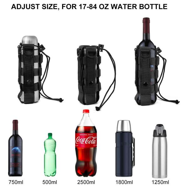 【持ち運びの自由】ウォーターボトルポーチは、調整可能なストラップとドローストリングデザインにより、どんなサイズのボトルでもしっかりと固定します。モールシステムと付属のショルダーストラップにより、アウトドア活動中でも手を自由に使え、快適に移動できます。