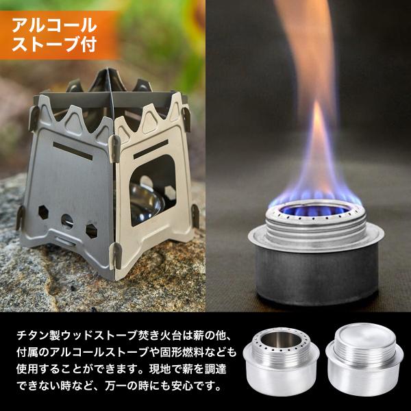 ウッドストーブ 超軽量チタン製 焚き火台 折りたたみ式 薪ストーブ ソロキャンプ 収納袋、アルコールストーブ付 バーベキューコンロ