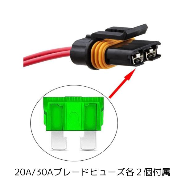 【多用途対応】12AWGゲージ配線ハーネスを採用し、20A/30Aのブレードヒューズに対応するこの製品は、オートバイ、バス、車両、船舶など多様な電源システムに適しています。