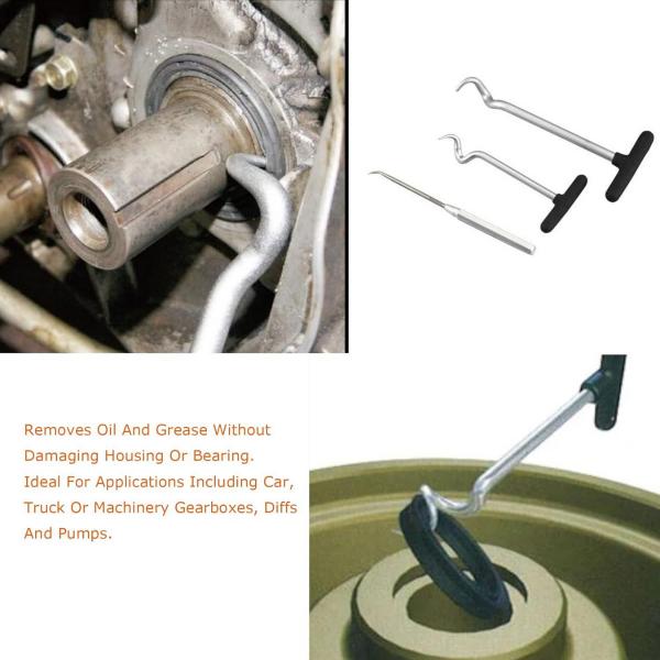 【多用途】3個セットのプーラーは、多くのサイズのオイルシールに対応可能です。異なる車両や機械のメンテナンスに柔軟に対応でき、作業の幅が広がります。