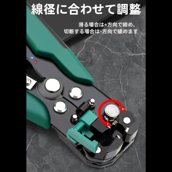 【自動調整機能】ワイヤーストリッパーは、自動調整機能を搭載しており、異なるサイズの電線に瞬時に対応します。これにより、作業時間を大幅に短縮し、効率的な作業を実現します。プロの電気技師から家庭のDIY愛好者まで、誰でも簡単に使用できる設計です。