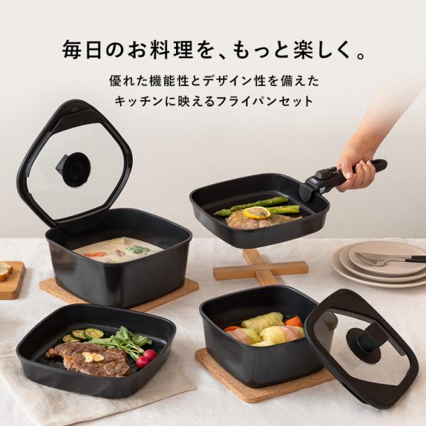 フライパンセット ボオグル BoOh!gle スクエア ハンドル コンパクト スタッキング こびりつかない セルフスタッキング 衛生的 IH ガス オーブン 対応 10点セット