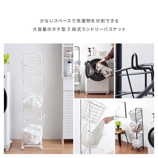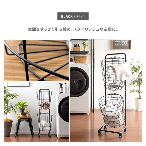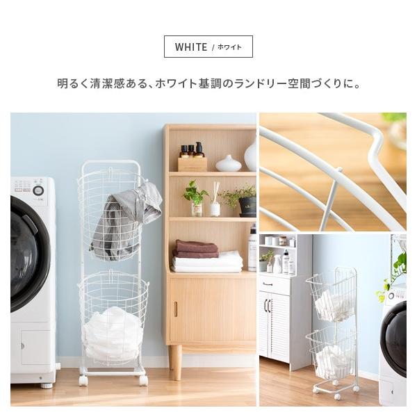 ランドリーバスケット おしゃれ 2段 スリム キャスター付き ワイヤーバスケット ランドリー 収納 ランドリーワゴン 洗濯カゴ 洗濯かご ホワイト ブラック