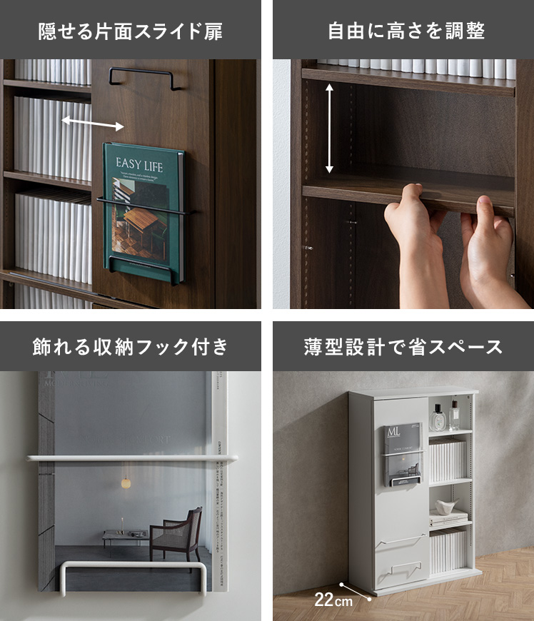 本棚 スリム 大容量 扉付き 推し活 棚 ラック 収納棚 書棚 漫画 収納 ディスプレイラック ロータイプ 幅60 薄型 単行本 引き戸 スライド扉