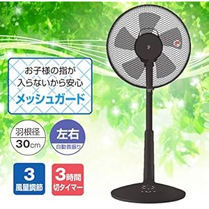 ホーム > 季節家電 > [山善] 30cmリビング扇風機 (押しボタンスイッチ)(風量3段階) タイマー付 ブラック YLT-C30(B) [メーカー保証1年]