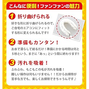 見逃しがちなエアコン送風口付近のホコリ取りに最適な商品”ファンファン” 驚くほどほこりが取れるからお掃除が楽しくなります。 準備は水で濡らして絞るだけなのでとっても簡単! ふわふわ、もこもこの毛が汚れを吸着。 曲げて使用できるので、奥まで届き様々な エアコンの形状に合わせることができます。 吹き出し口からのニオイ対策に! 汚れも落ちやすく、サッと洗って繰り返し使える! 家中すべてのエアコンにお使いいただけます。