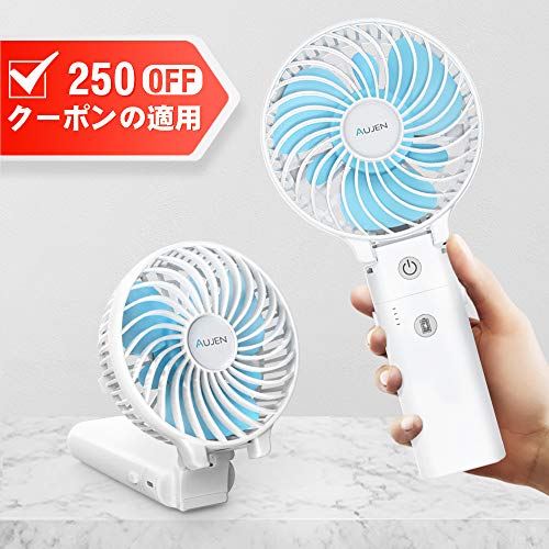 Aujen 857 view Aujen 充電式 携帯扇風機【2020年最新改良モデル】 扇風機 小型 卓上扇風機 モバイルバッテリー内蔵 USBポートより給電 最大作動時間20h 180度折りたたみ式 手持ちで便利 3段階調節