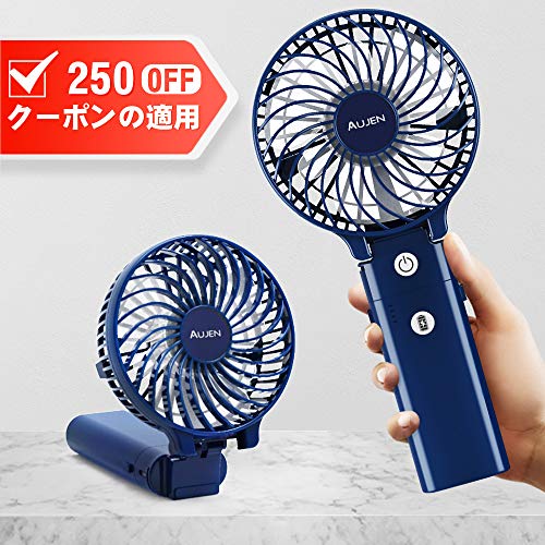 Aujen 947 view Aujen 充電式 携帯扇風機 【2020年最新改良モデル】 USB充電式 手持ち扇風機 卓上扇風機 折りたたみスタンド機能 3段階風力調節 最大20時時間動作可能 バッテリー内蔵(ブルー)