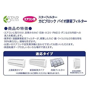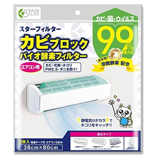 ホーム > 季節家電 > スターフィルター カビブロック バイオ酵素フィルター エアコン用 2枚入 38×80cm 粘着シール付 防カビ 帯電 エアコン2台分 お部屋のウイルス対策にも