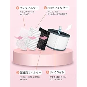 Dreamegg 918 view Dreamegg 空気清浄機 花粉 花粉症対策 除菌 消臭 空気清浄器 静音 暖色のナイトライト タイマー付き 適用面積12畳まで 4段風量設定 PM2.5 微粒子99.9%除去可 省エネ HEPA