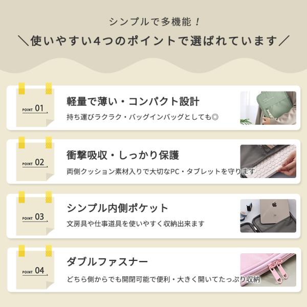 学校 会社 通勤 通学 テレワーク PC周辺 コンパクト ポケット収納 ダブルファスナー 持ち運び便利 小物収納