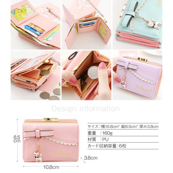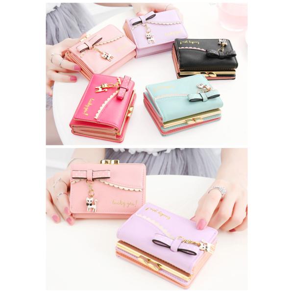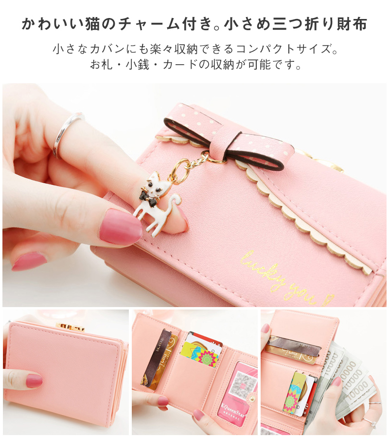 財布 小学生 女の子 レディース 三つ折り財布 コンパクト 小さい財布 カード収納 サイフ 猫 チャーム付き ウォレット 定期入れ プレゼント 送料無料