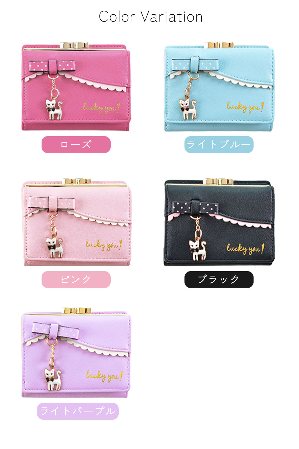 猫のチャーム付きお札 小銭 カード 収納 ミニ財布 さいふ