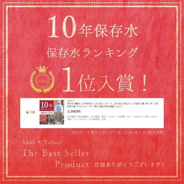 【キーワード】保存水 備蓄水 10年保存水 1.8l 6本入 2ケース 12本 防災 防災グッズ 地震 災害 5年 7年 10年保存可能 ミネラルウォーター 軟水 国産 海洋深層水 赤ちゃん ミルク 薬服用 飲料水 非常水 非常食 車載 自然災害 地震対策 防災対策 5年保存 7年保存 耐熱ペットボトル 硬度0 災害備蓄品